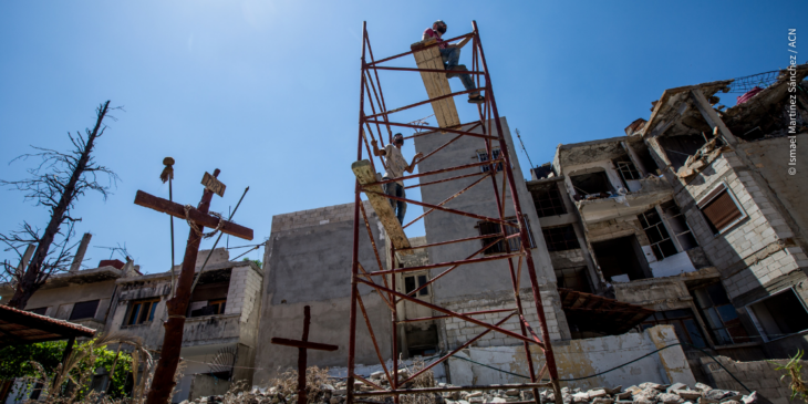 Gerade in Krisengebieten werden häufig Kirchen und kirchliche Einrichtungen durch Gewalt zerstört. Wir unterstützen den Wiederaufbau in diesen Gebieten, weil die Kirche Zentrum des Glaubenslebens und Zeichen der Hoffnung ist.